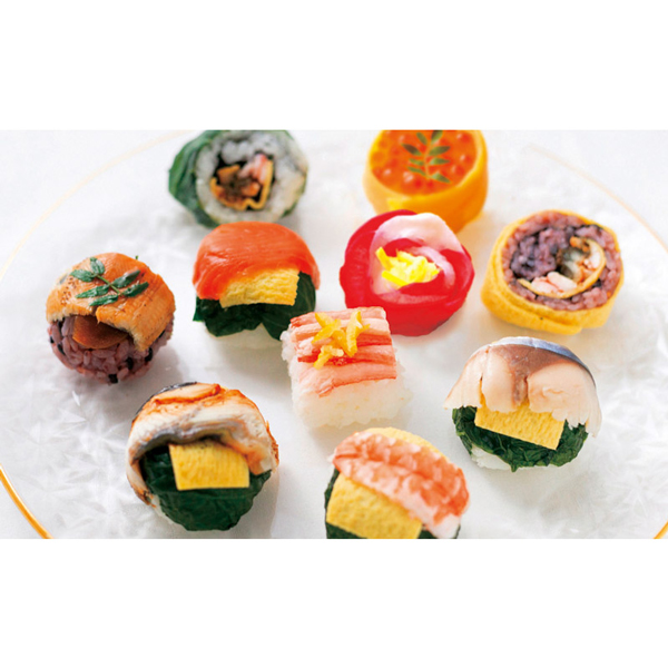 | 手鞠わさび葉寿し(鮭・鯖・海老・鰻)・古代あなら寿し×各2、紅ずわいがに棒寿司・古代巻・紅白華手鞠・わさび巻・いくら錦糸巻×各1(560g) |