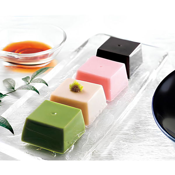 | 湯葉どうふ(100g)×3、ごまとうふ(白)(50g)×4、ごまとうふ(黒・抹茶・しそ)(50g)×各2、ごま醤油ジュレ(5g)×5 |