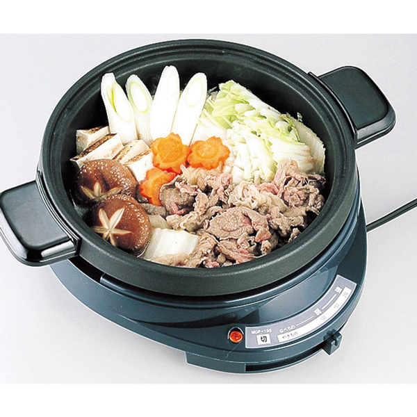 プレート表面はフッ素樹脂加工でこびり付きにくくお手入れも楽々です。温度調整レバー付で温度管理も簡単。鍋物や焼きそばが楽しめて、ホームパーティーにもおすすめです。