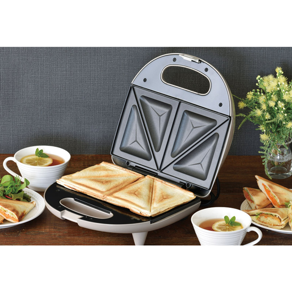 キッチンに溶け込む落ち着いたカラーのホットサンドメーカー。ホットサンドとワッフルのプレート付きです。おやつやランチに出来立てのホットサンドとワッフルをお楽しみください。