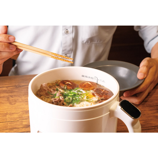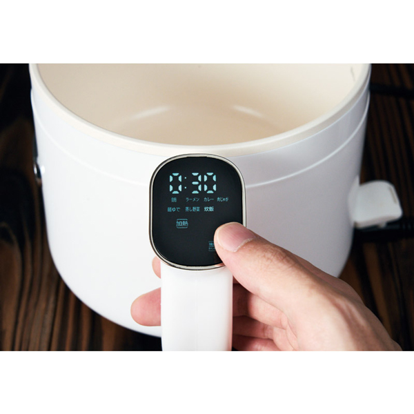 ボタンひとつで簡単に操作できる調理鍋。タッチ操作で多彩なメニューを手軽に調理可能です。蒸し皿や湯切り機能を備え、さらに便利に使えます。付属のレシピブックには20種類のメニューが掲載され、毎日の料理をサポートします。