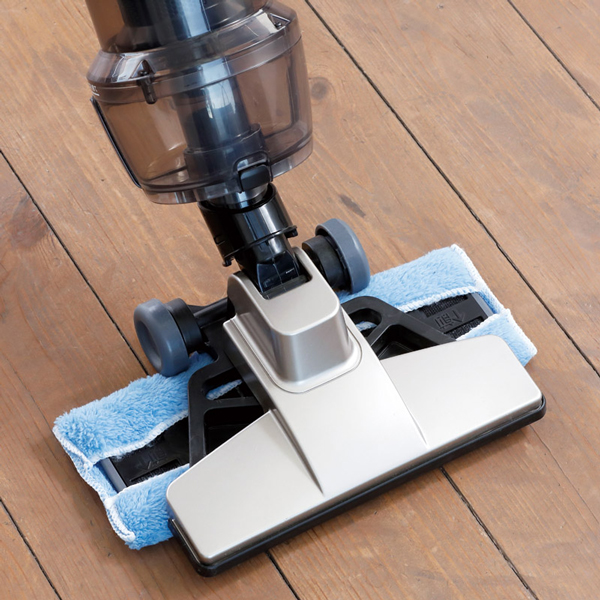 吸引と拭き掃除を同時にこなせるワイパー付きクリーナー。高速遠心分離サイクロンで吸込力が長く続き、紙パック不要で経済的です。ハンディ・スティックのどちらでも手元操作ができ、使い勝手も抜群。