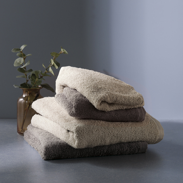 落ち着いた色合いとモダンなデザインのタオル。パイルにオーガニックコットン100%を使用し、やわらかなロングパイルに仕上げました。JOCA基準に基づき、人と環境に配慮し日本の技術で丁寧に製造しています。