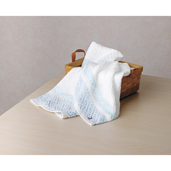清潔感のある色合いで使い勝手の良いタオル。日本有数のタオル生産地今治の伝統的手法からうみだされた心地の良いタオルです。古くから伝わる小紋柄で織り上げました。どなたにも喜ばれるタオルセットです。