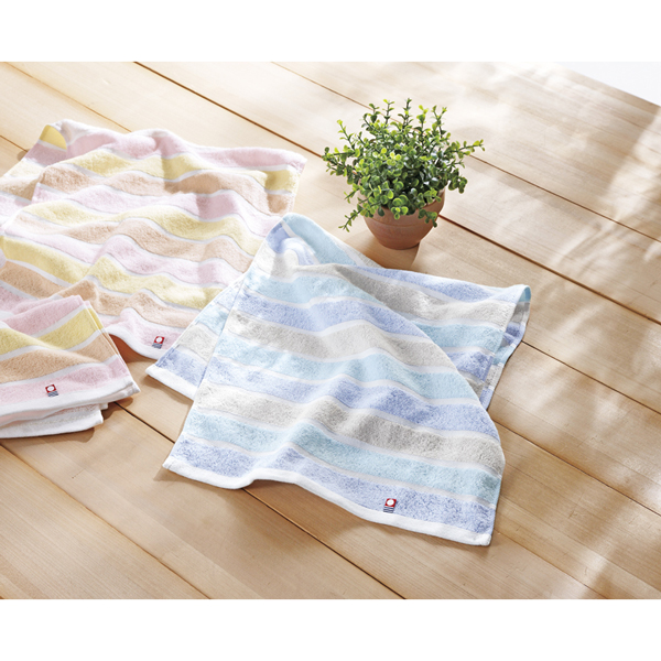 ふんわりとしたソフトな肌ざわりとやさしい色合いのボーダー柄の今治タオル。使うシーンを選ばず、幅広くご使用いただけるシンプルなデザインです。お肌になじみ、水分をしっかり吸収してくれるのでとても使いやすく贈り物に最適です。