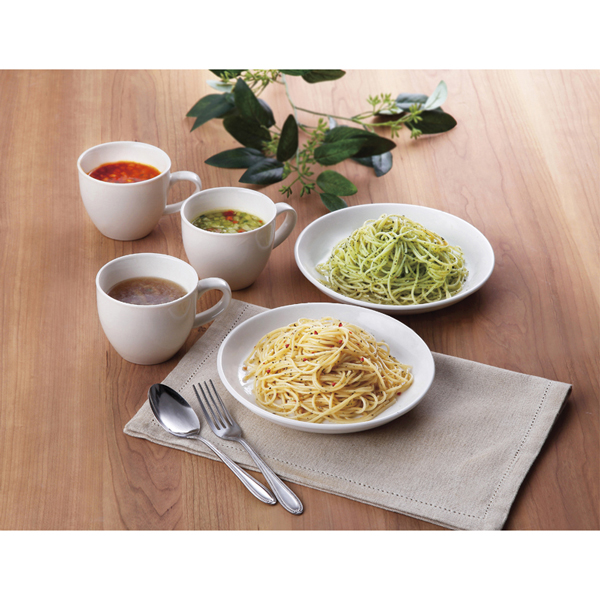 | オニオンスープ・ミネストローネ・緑色野菜の塩スープ×各2、粉末パスタソース(ジェノベーゼ・ペペロンチーノ)×各3 |