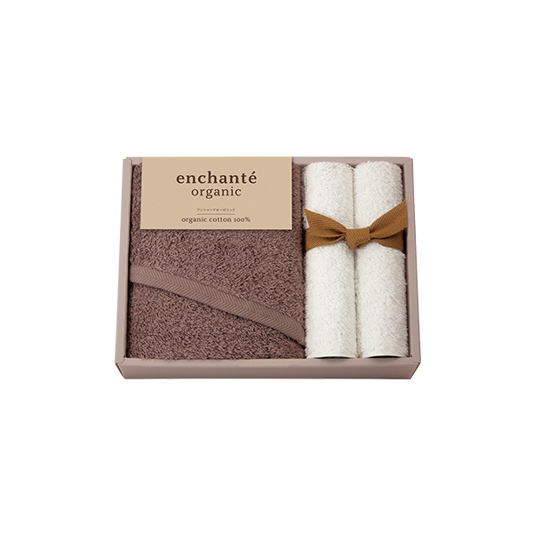 • 3piece タオル・寝具 アンシャンテオーガニック オーガニックコットン フェイスタオル1P・タオルハンカチ2P(ココアブラウン)