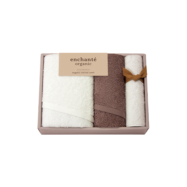 アンシャンテオーガニック オーガニックコットン スリムバスタオル1P・フェイスタオル1P・タオルハンカチ1P(ココアブラウン)