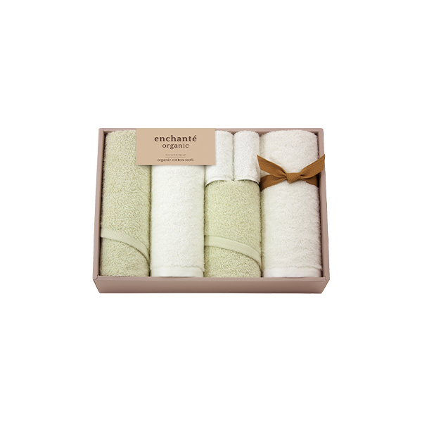 アンシャンテオーガニック オーガニックコットン スリムバスタオル2P・フェイスタオル2P・タオルハンカチ2P(アイスグリーン)