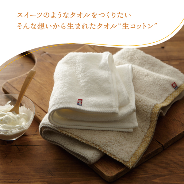 スイーツのようなタオルを作りたい、そんな想いから生まれた今治タオル「生コットン」。真っ白な生クリームのようなふんわり心地と軽くてふっくらとろける肌触りの今治タオルのギフトです。