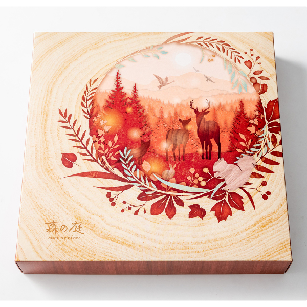 非日常の森の庭で素朴なお菓子を味わう『森の庭』シリーズ。しっとりバームクーヘンにカラメルソースをまとわせ、砂糖をかけてさらに焼き上げた「焦がしキャラメルがしみ込んだバーム」と、「しっとりバームクーヘン」の2種を詰め合わせました。ひと手間かけた味わいをお楽しみください。
