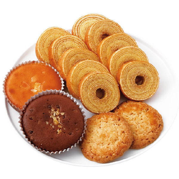 元気なたまごをたっぷりと。ちょっと贅沢なティータイム。有精卵をたっぷり使ったスイーツの詰合せ。ミニバームクーヘンや、二つの味のマドレーヌなどバラエティ豊富だから、みんなの集まりが華やぎます。