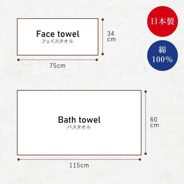 | バスタオル(60×115cm)・フェイスタオル2P(34×75cm) |