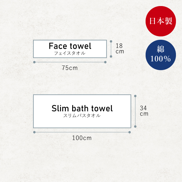 スリムバスタオル(34×100cm)・フェイスタオル(18×75cm)
