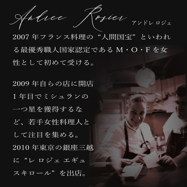 フランス国家最優秀職人章「M.O.F」受賞の女性天才シェフ、アンドレ・ロジェ監修の4種類の味を楽しめるアイスギフトです。銀座のフレンチレストランならではの豊かな味わいをお楽しみください。
