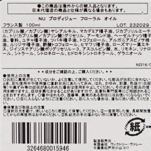 - 3piece> デパコス・ブランドコスメ一覧 > ニュクス プロディジュー フローラル オイル 100ml