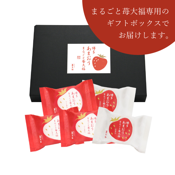 福岡の苺農家さんが愛情たっぷりに育てたMサイズの博多あまおうを、まるごと1玉使用した紅白2種類の苺大福。一口頬張ると、あまおうの酸味と、あんこの上品な甘みがお口の中に広がります。半解凍で美味しくお召し上がりいただけます。フルーツ大福で有名な京都養老軒監修。