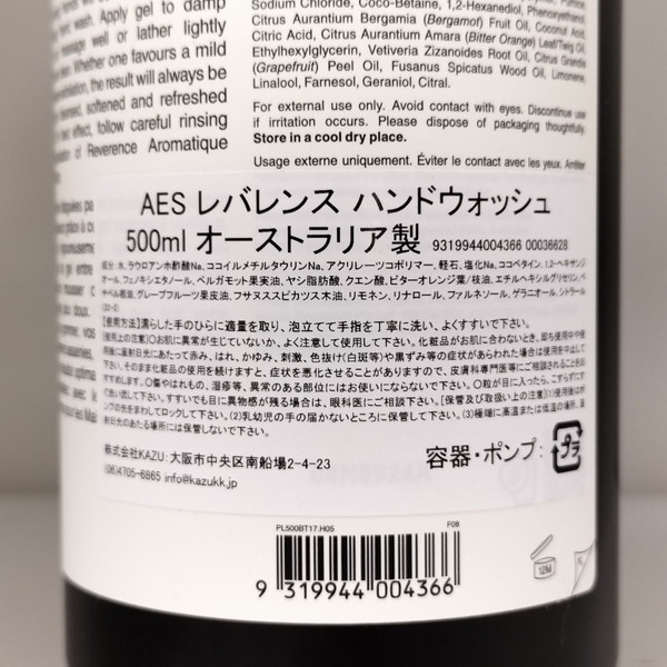 | ■ブランド イソップ / Aesop ■内容量 500ml ■ご使用方法 濡れた手に取り、泡立てた後、丁寧にすすぎます。 ■成分 水, ラウロアンホ酢酸Na, ココイルメチルタウリンNa, アクリレーツコポリマー, 軽石, 塩化Na, ココベタイン, 1,2-ヘキサンジオール, フェノキシエタノール, ベルガモット果実油, ヤシ脂肪酸, ビターオレンジ葉/枝油, エチルヘキシルグリセリン, ベチベル根油, グレープフルーツ果皮油, フサヌススピカツス木油, 香料[07] ※商品の改良や表示方法の変更などにより、実際の成分と一部異なる場合があります。実際の成分は商品の表示をご覧ください。 |