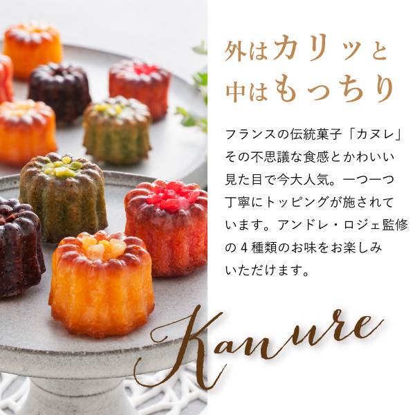 フランスの伝統菓子「カヌレ」を、食べやすいサイズに焼き上げました。一つ一つ丁寧にトッピングした、銀座らしい華やかなスイーツギフトです。カジュアルからフォーマルまで、幅広い用途でお使いいただけます。