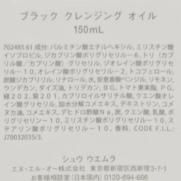 - 3piece> デパコス・ブランドコスメ一覧 > シュウ ウエムラ ブラック クレンジングオイル 150ml