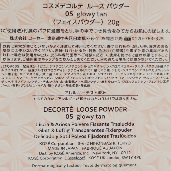 - 3piece> デパコス・ブランドコスメ一覧 > コスメデコルテ ルースパウダー #05 glowy tan