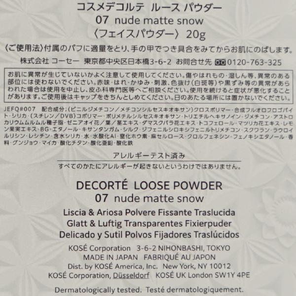 コスメデコルテ ルースパウダー #07 nude matte snow