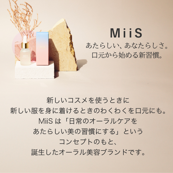 MiiSオリジナル清掃成分F-メタリックポリリン酸(三リン酸5Na、リンゴ酸)により、歯の汚れを落として本来の白さへ導きます。