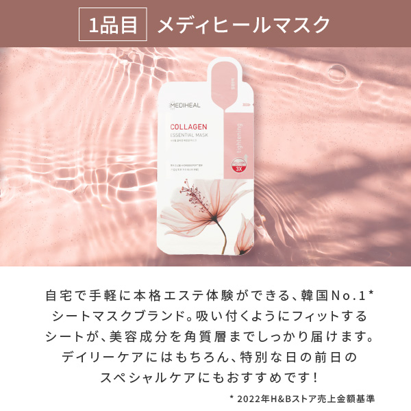 メディヒールは、韓国No.1*シートマスクブランド。肌悩みに合わせた豊富なラインナップで、自宅で手軽に本格エステ体験ができます。特筆すべきは、その密着力。肌に吸い付くようにフィットするシートが、美容成分を角質層までしっかり届けます。デイリーケアにはもちろん、特別な日の前日のスペシャルケアにもおすすめな、万能シートマスクです。