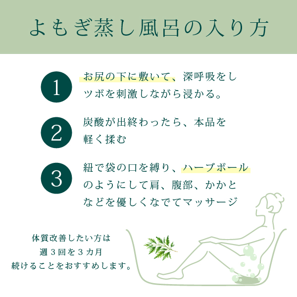 お尻の下に敷いてゆっくり入浴、ハーブボールのようにして全身をマッサージ。
