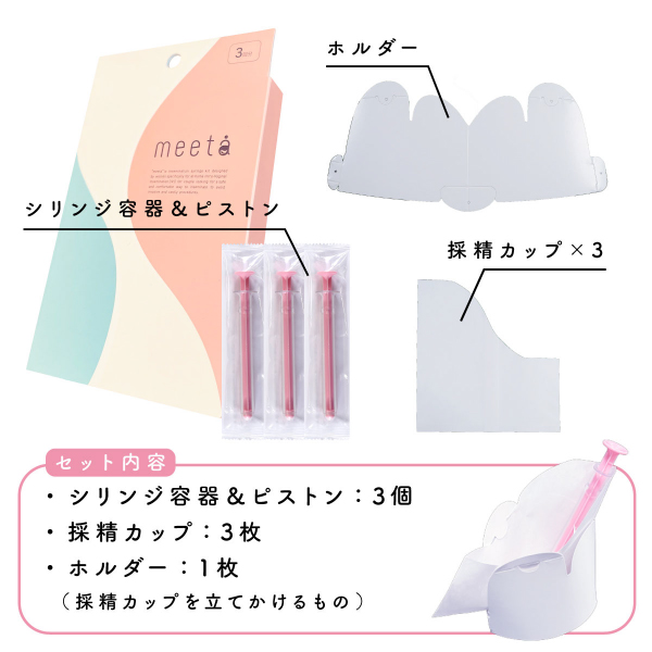 | ・シリンジ容器&ピストン:3個 ・採精カップ:3枚 ・ホルダー:1枚 |