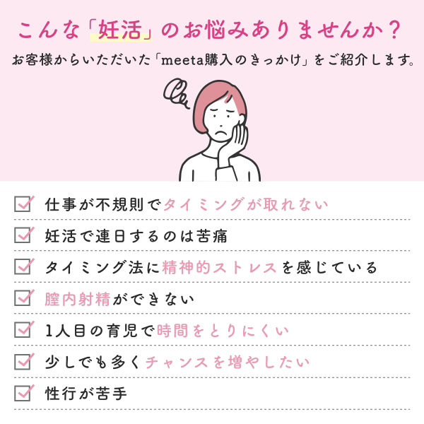 簡易シリンジ法キットmeeta(ミータ)は、自分で自宅で「シリンジ法」が試せるキットです。
