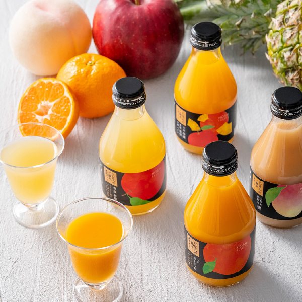 | 山口島そだち×2、青森林檎×2、ミックスジュース(国産蜜柑・沖縄パイン・青森林檎)×2、山梨 和歌山桃×2、各180ml |