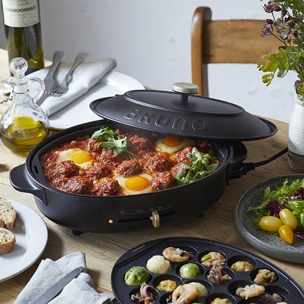 平面、たこ焼き、深鍋と充実のプレートがセットに。付属のハンドルを使えば、プレートの取り換えも楽々。テーブルで次々と調理できるので、ホストもゲストも一緒にたのしめます。くず受けトレイ付きでお手入れも簡単。毎日使いたくなるデザインです。