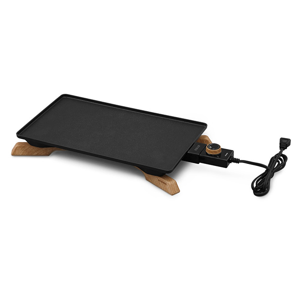 ヒーター内蔵プレートで、ムラなくおいしく焼き上げる。煙を抑制する減煙モード搭載。薄型プレート&折りたためる脚で、収納しやすい。