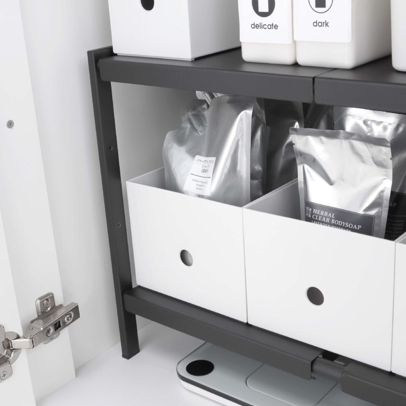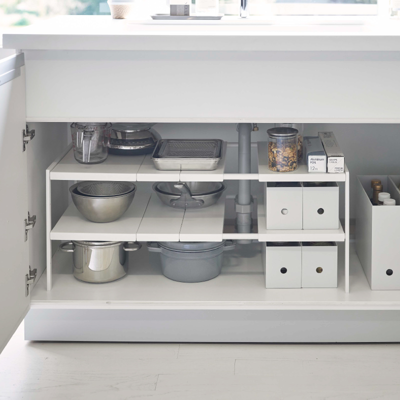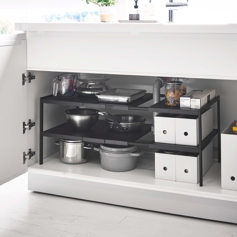 - 3piece> インテリア・雑貨 > キッチン小物収納・ゴミ箱 > 【直送】伸縮シンク下ラック 2段 D30 ブラック【山崎実業 tower タワー】