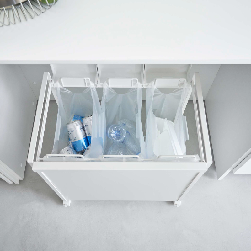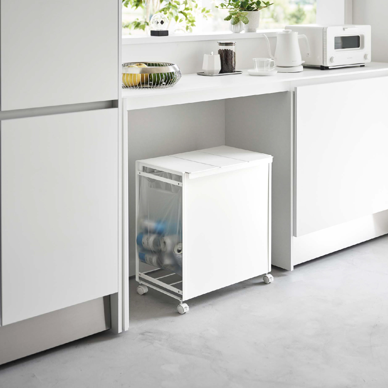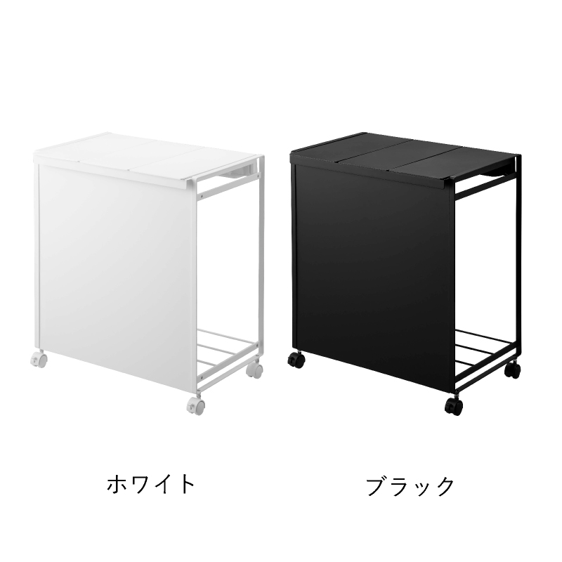 レジ袋を隠して分別できるスタイリッシュな蓋付き分別ダストワゴン。