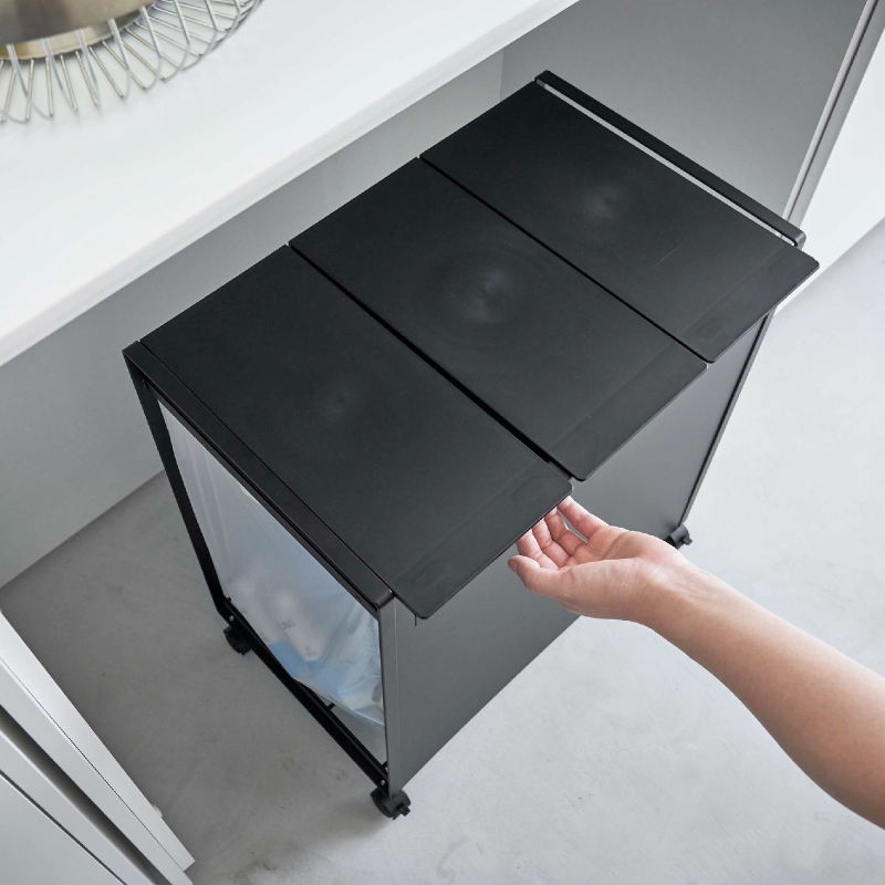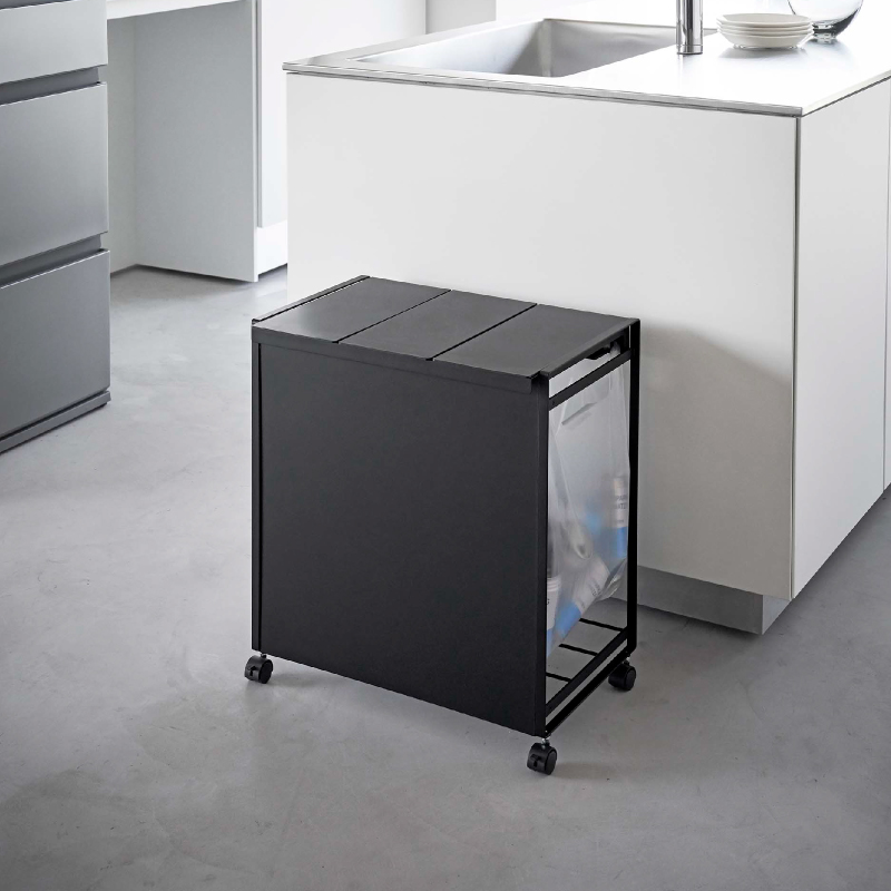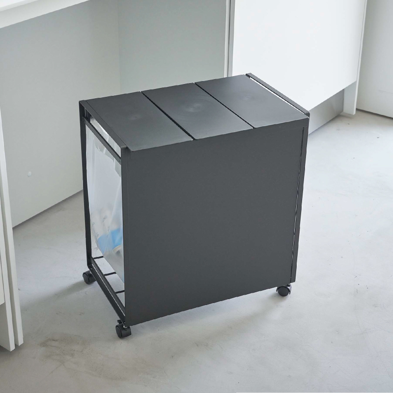 - 3piece> インテリア・雑貨 > キッチン小物収納・ゴミ箱 > 蓋付き目隠し分別ダストワゴン 3分別 ブラック【山崎実業 tower タワー】