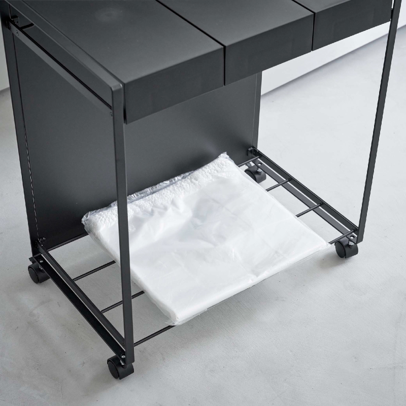 キャスター付きなのでお掃除の際の移動もスムーズです。 底面はレジ袋のストック収納置きにも便利。