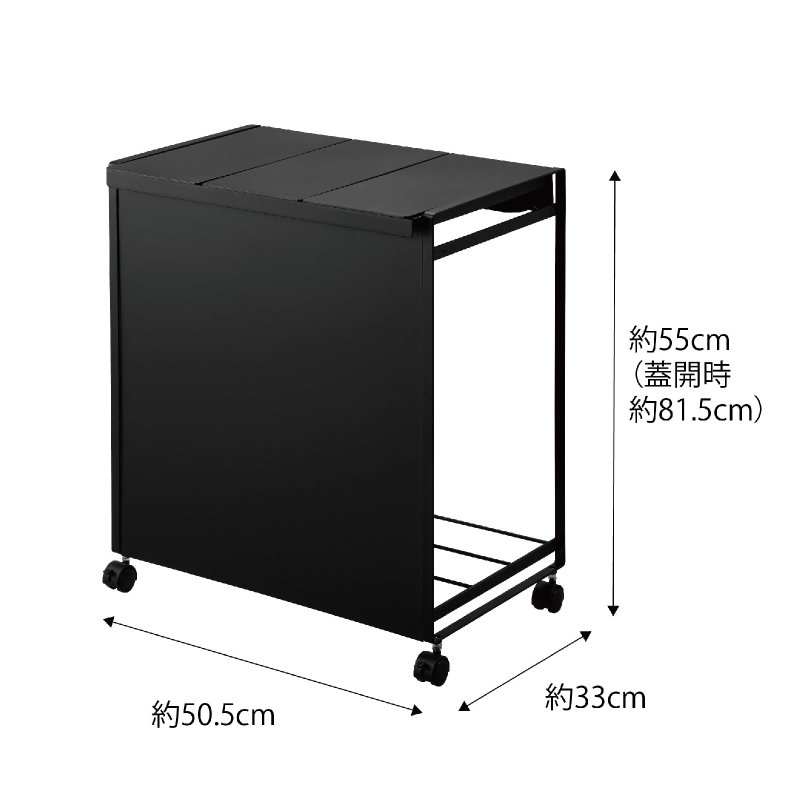 | ■外寸:約幅505×奥行330×高さ550mm( キャスター含む ) ■フタ開口時の高さ:約815mm |