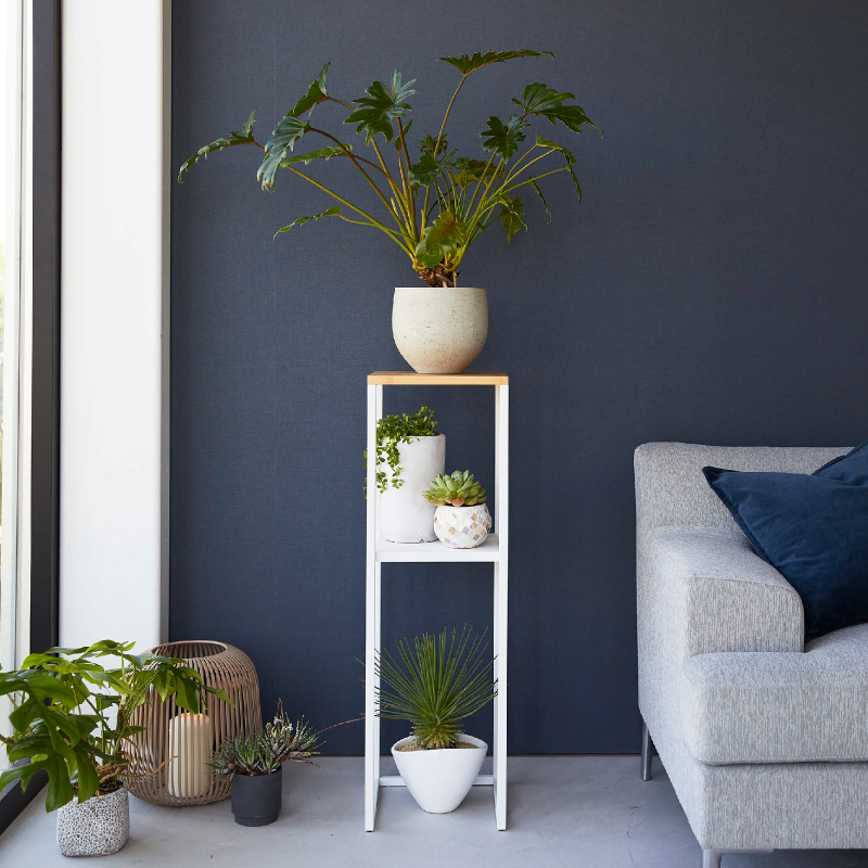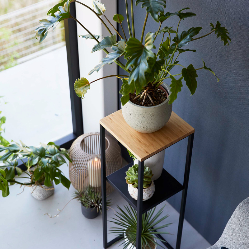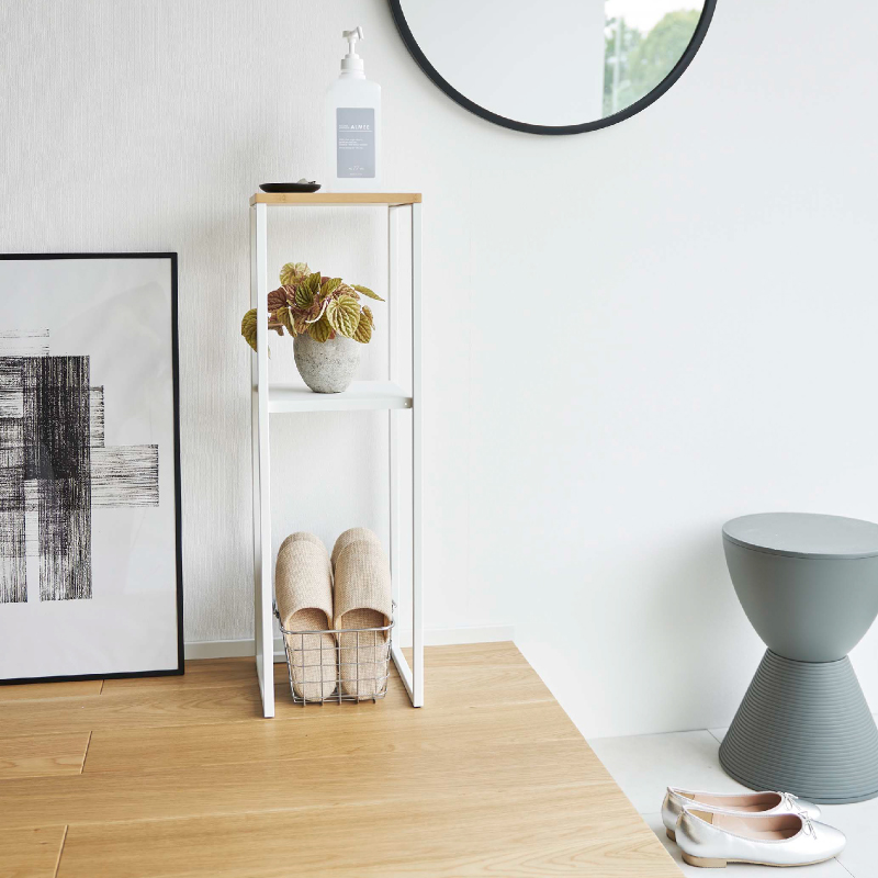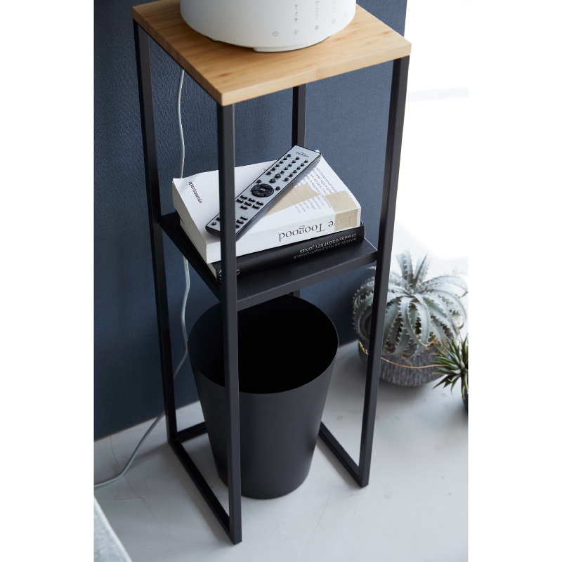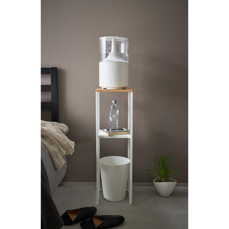 高い位置に加湿器を置くことで、放出されたミストが気化しやすくなり、効率的に加湿ができる加湿器スタンド。 棚は小物置きとして、下段はゴミ箱の置き場所としても活用できます。 アルコールなどの除菌グッズや観葉植物を置いても。 天板は水に強く強度が高い竹製。 下の棚は外して使用することもできます。