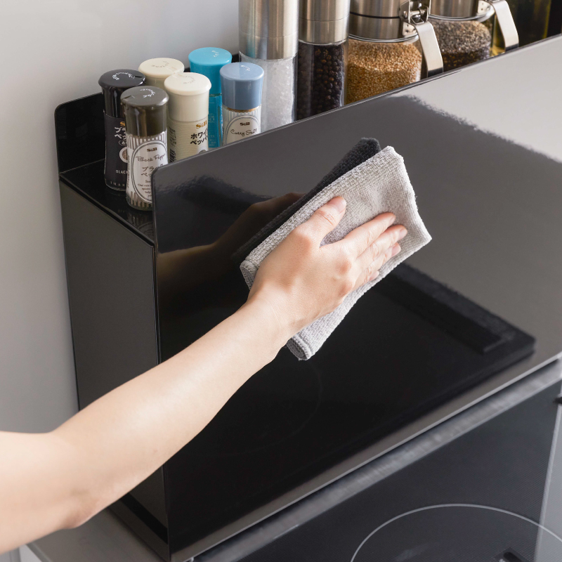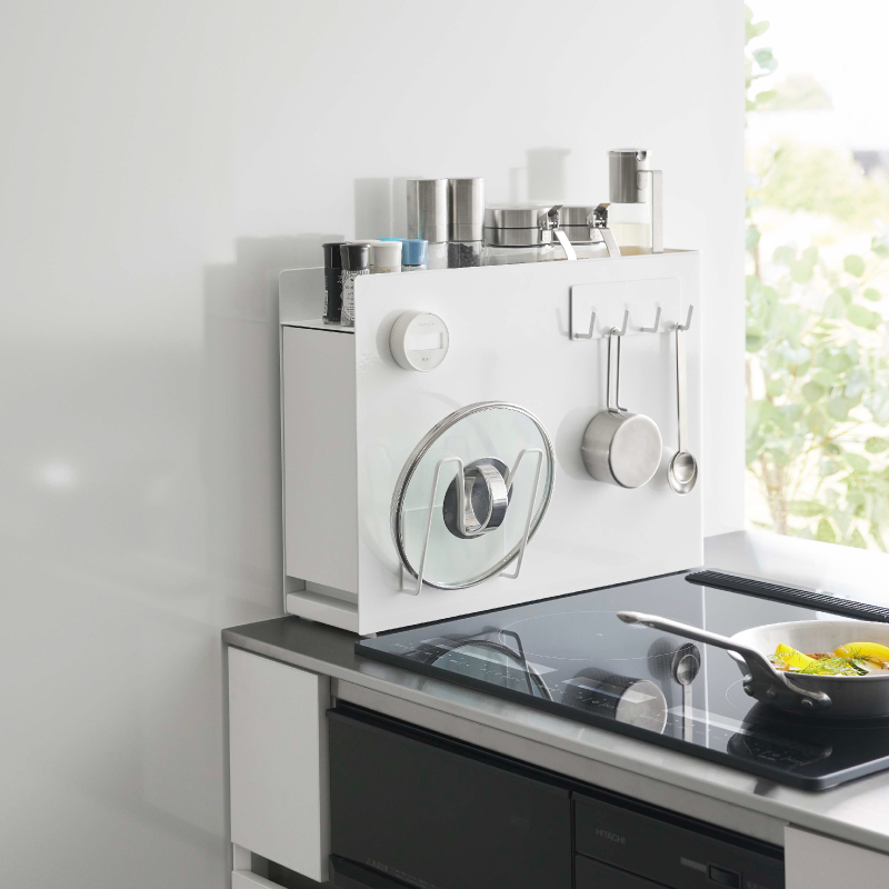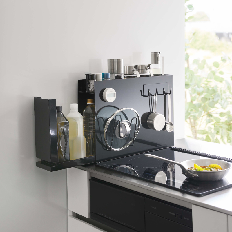 シンプルなデザインがスタイリッシュで、コンロ周りをまとめてすっきり整理ができるスパイスラックです。