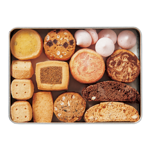 | いちごメレンゲ・ショートブレット×各5個、ストロベリーマーブル・紅茶×各3個、・ビスコッティープレーン・ビスコッティーココア・五穀・玄米チョコ・チョコマーブル・パンプキン・チーズ×各2個 |