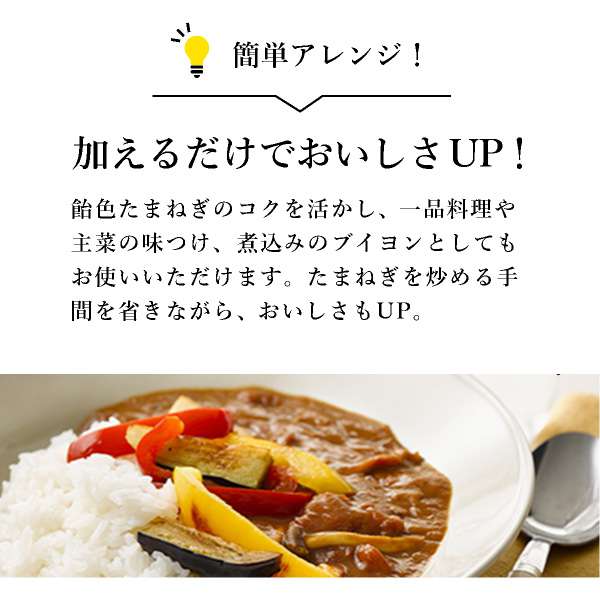 | 原材料:チキンエキス、小麦発酵調味液、ローストオニオンペースト、酵母エキス、でん粉、黒砂糖、ブイヨン、ポークオイル、有機発酵野菜粉末、食塩、にんにくパウダー、黒こしょう、具(ローストオニオン(玉ねぎ(淡路島産)、大豆油))/増粘剤(グァーガム)、酸化防止剤(V.E)、(一部に小麦・大豆・鶏肉・豚肉を含む) 保存方法:※直射日光を避け、常温で保存してください。 |
