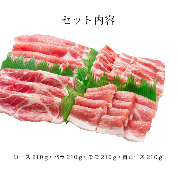 | 豚ロース焼肉用(210g)、豚バラ焼肉用(210g)、豚モモ焼肉用(210g)、豚肩ロース焼肉用(210g) |