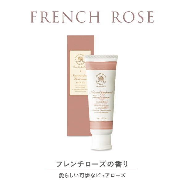 【フレンチローズ】可憐なミニバラのつぼみや花びらをイメージした、透明感あふれるナチュラルローズの香り。ローマンカモミールやスミレをアクセントに、ダマスクローズやセンチフォリアローズなどのバラを贅沢にブレンド。可愛らしい気持ちになれるフェミニンな仕上がり。