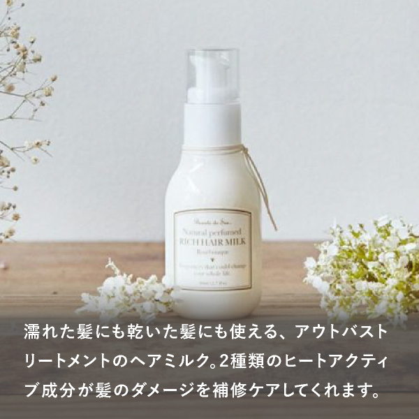 - 3piece> 美容・コスメ > ヘアケア・スタイリング > ヘアオイル > ボーテデュサエ ナチュラルパフュームドリッチヘアミルク(ローズブーケ)