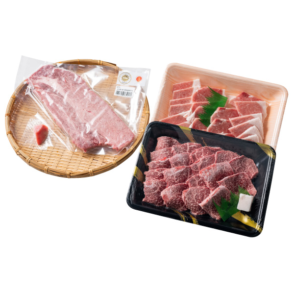 | 神戸牛肩ロースステーキ200g、神戸牛モモ焼肉用350g、神戸ポークロース焼肉用200g |