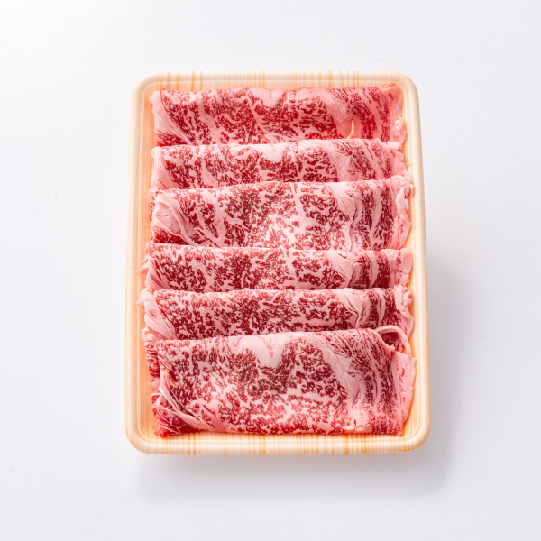 馬刺しと黒毛和牛の専門店「フジチク」オリジナルブランド黒毛和牛「藤彩牛」。阿蘇のミネラル豊富な地下水とオリジナル配合の飼料で育ち、1頭ごとに徹底的に健康管理を行い、手塩にかけて育てています。その肉は赤身とサシのバランスが絶妙で、中でもロース肉はひときわやわらかい肉質と、美しいサシが自慢。熟練の職人が丁寧にスライスした肉を、すき焼きなどでお楽しみください。