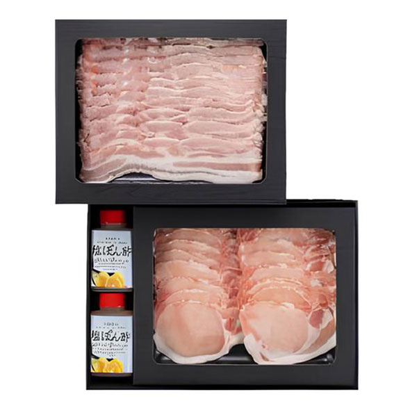 | 豚ローススライス・豚バラスライス 各280g、塩ぽん酢180g×2本 |