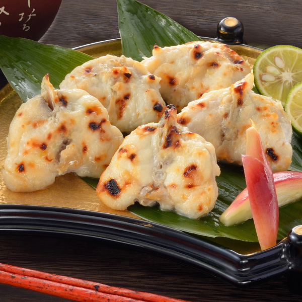 山口県を代表する銘酒 「五橋」大吟醸酒粕の提供を受け、その酒粕に本場下関の真ふくを漬け込みました。